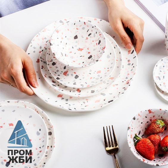 Компания «ПромЖБИ» предлагает изготовление на заказ оригинальной посуды терраццо по индивидуальным проектам. Мы тщательно контролируем качество, а в подтверждение соответствия характеристик продукции заявленным стандартам выдаем на руки технический паспорт.